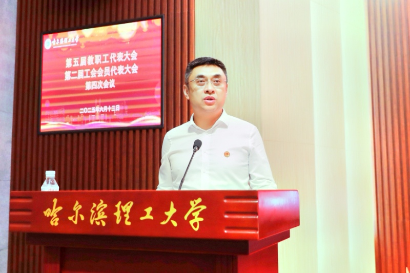 6月13日下午,哈尔滨理工大学第五届教职工代表大会和第二届工会会员代表大会第四次(扩大)会议在教学主楼五楼报告厅召开。学校领导赵琳、刘侠、郭加利、赵水杉、孙树海、杜军、林屹、周宏根出席会议。校长刘侠作题为《凝心聚力提质增效奋力开创特色鲜明的国内一流理工科大学建设新局面》的工作报告,校党委副书记、工会主席郭加利主持大会。