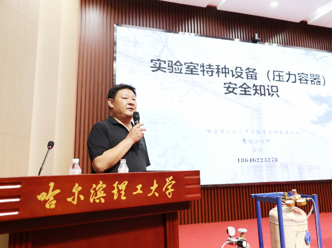 实验室与设备管理中心特邀哈尔滨工业大学资深专家宋彬教授,就实验室特种设备安全中的“气体钢瓶规范使用”开展专项培训。宋教授紧密结合大量安全检查督导实践案例,系统讲授了气体钢瓶的分类特性、安全储存规范、标准操作流程及应急处置方法等核心内容。培训采用“案例驱动+实操指导”模式,有效提升师生的气体钢瓶安全使用技能与主体责任意识。