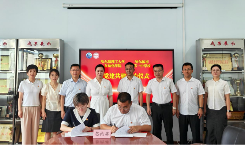 为深入贯彻落实全国、全省高校党的建设工作会议精神,7月9日,自动化学院、哈尔滨市第一中学校的教工党支部在教学主楼E1412举行党建共建签约仪式。学院党委书记张颖、院长胡军、党委副书记刘桂娟、副院长李冰、人工智能党支部书记于浍、辅导员兰思嘉,哈尔滨市第一中学校工会主席崔岩、党政办公室主任曲福利、高三支部书记方磊以及高三年级其他党员教师出席签约仪式。