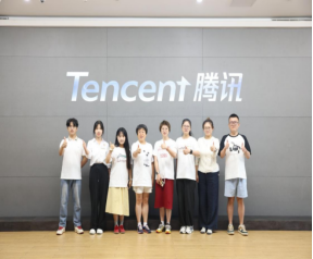 实践团成员体验百度“萝卜快跑” 实践团在腾讯北京总部合照