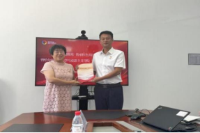 实践团与石油大院社区党委党建共建现场 社区党委张腾宇与实践团王晨作为双方代表签约