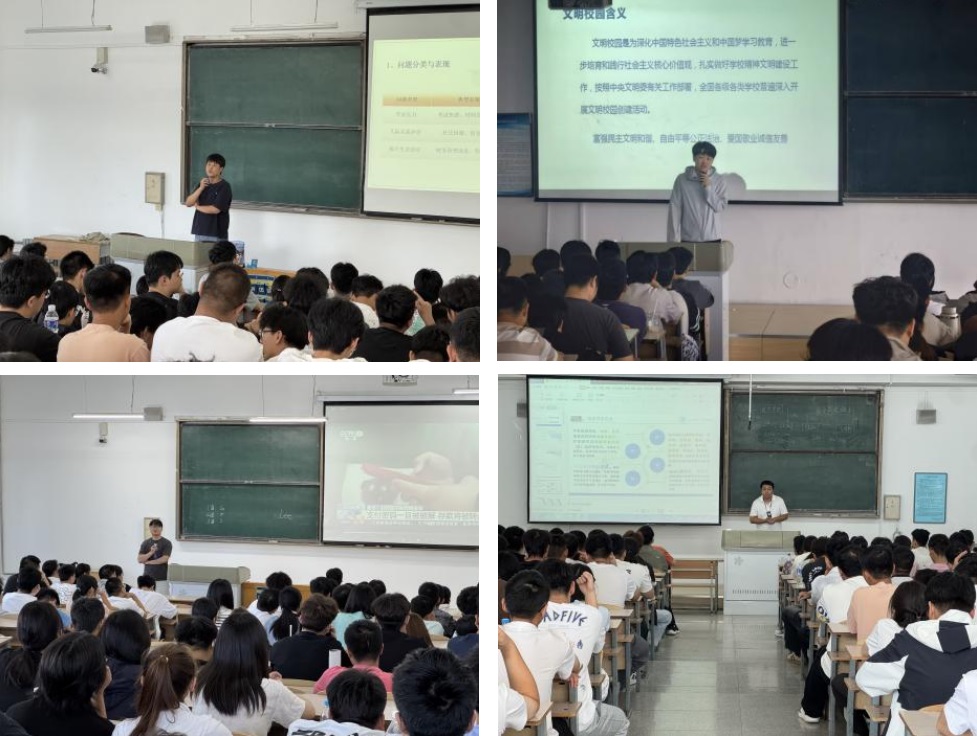 素质与安全教育以“强素质、保安全”为核心,全方位守护新生健康成长。在素质培养方面,辛梓有面向全体新生讲解心理适应问题及调节方法,同时推进新生心理普测工作,对潜在心理问题倾向学生及时排查;唐硕开展文明校园教育,引导新生树立“健康第一”理念、养成良好生活习惯,加强诚实守信与自律自强教育。在安全防护方面,王建民讲授网络思政与网络安全教育,培养新生网络安全法治意识和网络道德观念,引导新生依法上网、文明上网;陈俊杰聚焦新生安全防护需求,围绕校园高频安全风险主题,通过案例剖析让新生直观认识各类安全隐患,全面提升新生自我保护能力。