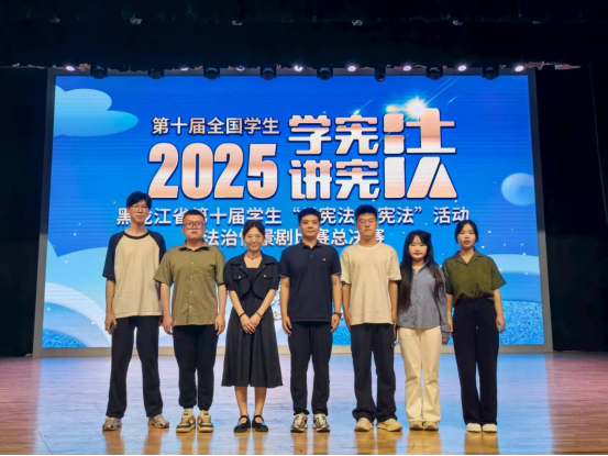 决赛备战阶段,学院党委副书记邬长明、辅导员孙启瑞、刘祥蓉与学院教师黄大威、张丽红一起全程为备赛工作提供支持与帮助,从关键环节把控到细节优化给予引导;胡雪、刘泽辉、闫雨思、张华宇、潘曰昊、韩龙雪6名参赛学生全力以赴,利用课余时间反复打磨演技,深入揣摩角色心理,在一次次排练中深化对法治精神的理解,确保将法治重要作用通过生动故事完美传递。