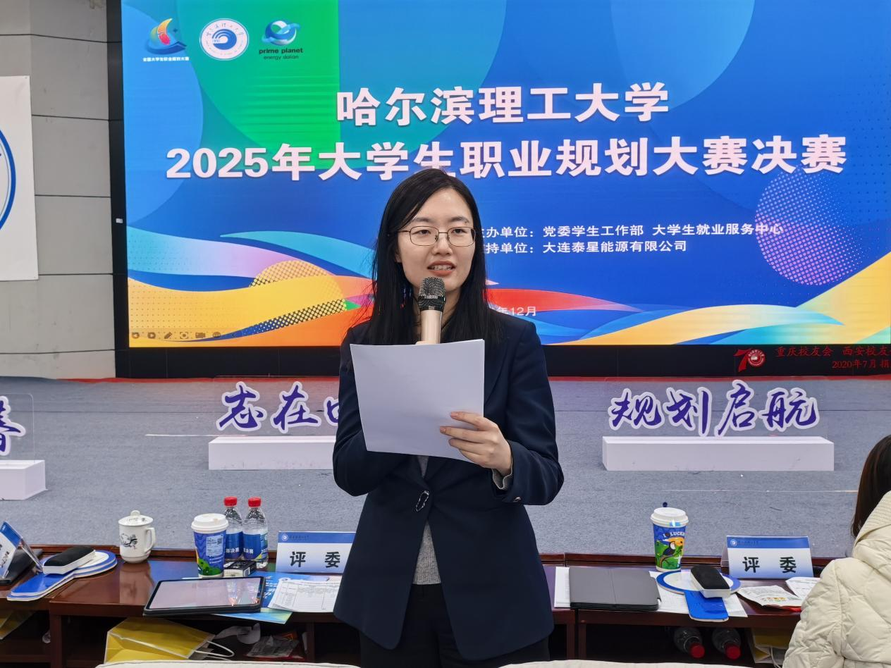 为确保赛事评审的专业性与权威性,本次比赛特别邀请哈尔滨工业大学马克思主义学院副教授、第二届全国大学生职业规划大赛国赛金奖选手指导教师何艺宁,哈尔滨师范大学学生就业指导处副处长王清艳,黑龙江建筑职业技术学院就业创业教研室主任丁姿,哈尔滨新区人力资源服务有限公司总经理、哈尔滨新区职业指导工作室主任滕俊媛以及我校生涯发展与就业指导教研室主任甄志勇组成专业评审团。从职业目标匹配度、岗位胜任力、发展潜力、规划可行性、逻辑清晰度、现场表现力等多个维度对选手进行综合评分,并对选手的规划方案提出了针对性的优化建议,为学生职业发展注入专业力量。