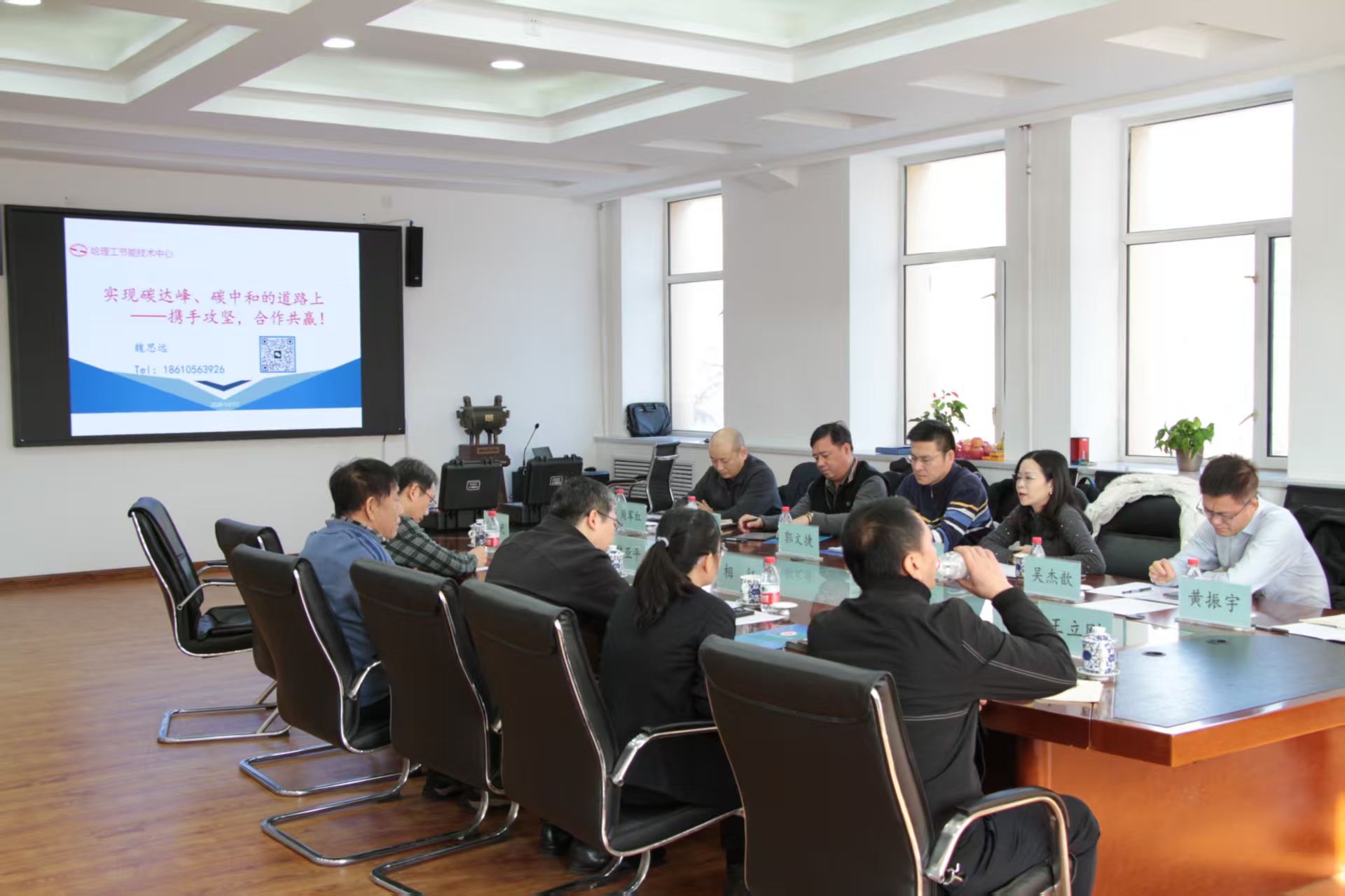 郭幸妮介绍了广东省开展能源计量审查及能效、水效检查的情况,希望双方今后在科研突破、科技成果转化、计量数据充分利用等方面深度合作,共同助力 “双碳”,服务国家绿色低碳转型。郭文捷表示,广东省计量科学研究院作为国家级碳计量中心,始终将火力发电行业及能源计量、碳排放计量等领域列为关注重点与工作核心,明确了此次调研的核心目的是学习借鉴我校科技园在产学研协同、企业孵化方面的先进模式,深入了解哈尔滨四远测控技术有限责任公司在测控产品研发、计量精度控制等方面的实践经验,探讨双方在相关领域的合作可能性。