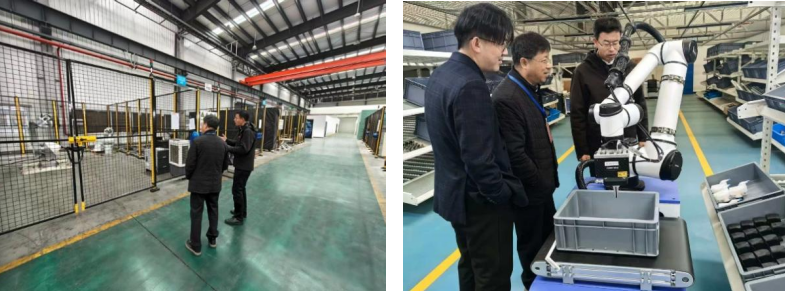 学院教师深入合肥市智能机器人研究院下属企业哈工图南智控机器人有限公司及芜湖市埃夫特智能机器人股份有限公司的核心生产研发区进行深度考察。先后走访了两家企业的机器人装配产线、性能检测车间、技术研发实验室等关键部门,近距离观摩了教学机器人平台、多关节工业机器人、新型协作机器人、人形机器人等产品的制造工艺、测试流程、控制架构及实际应用案例。针对企业高度关切的机器人复杂作业环境自适应能力强化等技术难题,学院教师与企业技术专家开展了深入交流并提供初步解决方案。为全面掌握机器人行业技术发展前沿,团队围绕机器人人机共融交互、具身智能技术等前沿方向,与企业研发人员进行了卓有成效的技术探讨,为机器人技术突破与规模化应用开辟了可行性路径。
