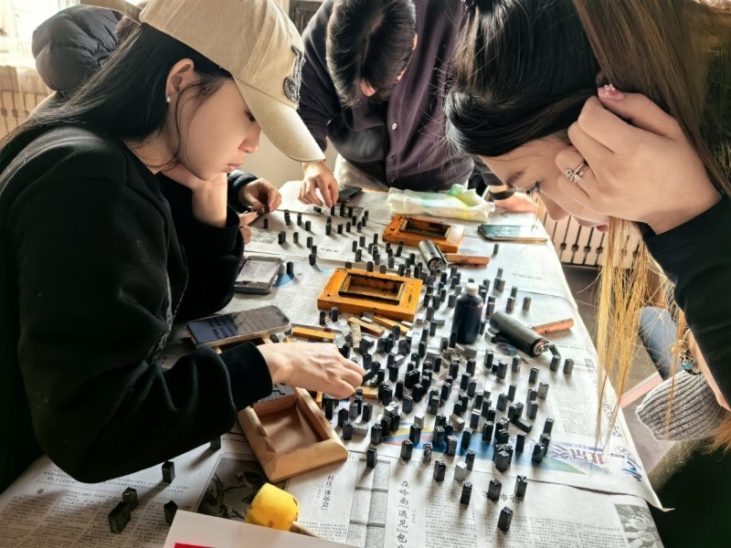 文化体验与实践环节,为学生们开启多元探索之旅。走进冰雪大世界,冰雕奇景流光溢彩,冰砌城堡与璀璨灯光交相辉映,冰滑梯的极速俯冲、雪地漫步的静谧惬意,让同学们沉醉于北国冬日的梦幻浪漫;参与冰壶体验,在专业指导下握壶、瞄准、刷冰,在协作竞技间感受“冰上国际象棋”的智慧与乐趣,解锁东北冰雪运动的独特魅力;探访敷尔佳科技有限公司,智能化生产线与研发实验室尽显科创力量,从原料筛选到成品检测,直观感受中国企业的严谨与创新。此外,扎染课堂上,绳结捆扎间晕染出独一无二的斑斓纹样;活字印刷体验中,字模排布间复刻千年文明智慧;篆刻创作里,刻刀起落间雕琢方寸间的匠心神韵;包饺子时,围坐畅谈揉面包馅,在烟火氤氲中品味团圆寓意;做东北饭包时,生菜裹着鲜香食材,一口下去满是地道风味,多元活动在他们舌尖与心间,留存下深刻而独特的中国记忆。