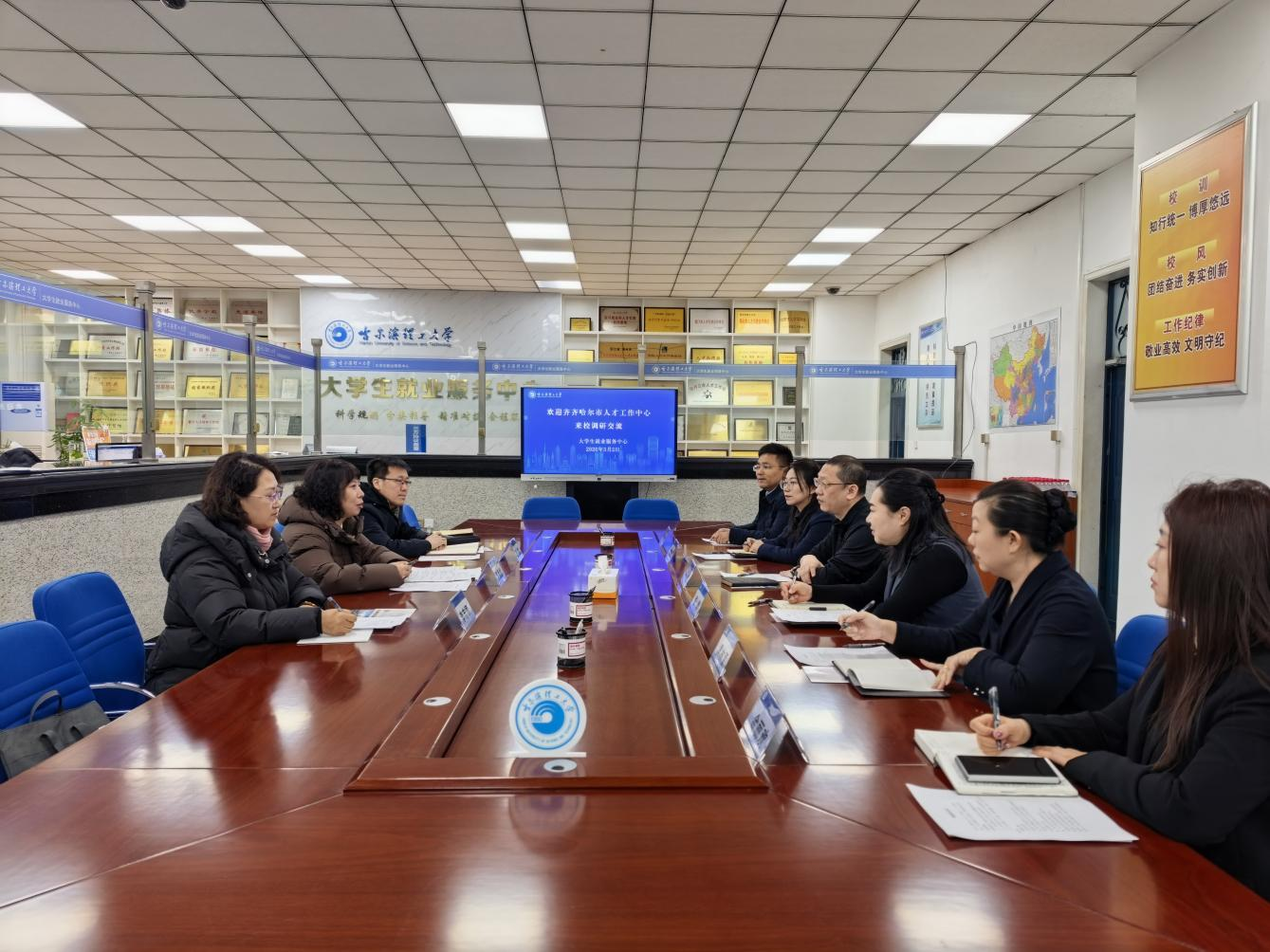3月2日上午,齐齐哈尔市人才工作中心主任许晶哲一行3人莅临我校,在西区1号楼205会议室召开校地人才合作交流座谈会。双方围绕人才引进、校园招聘等核心议题深入交流,共谋校地人才协同发展新路径。我校自动化学院党委书记张颖、党委副书记刘桂娟,大学生就业服务中心副主任崔征及相关工作人员参加座谈,座谈会由崔征主持。