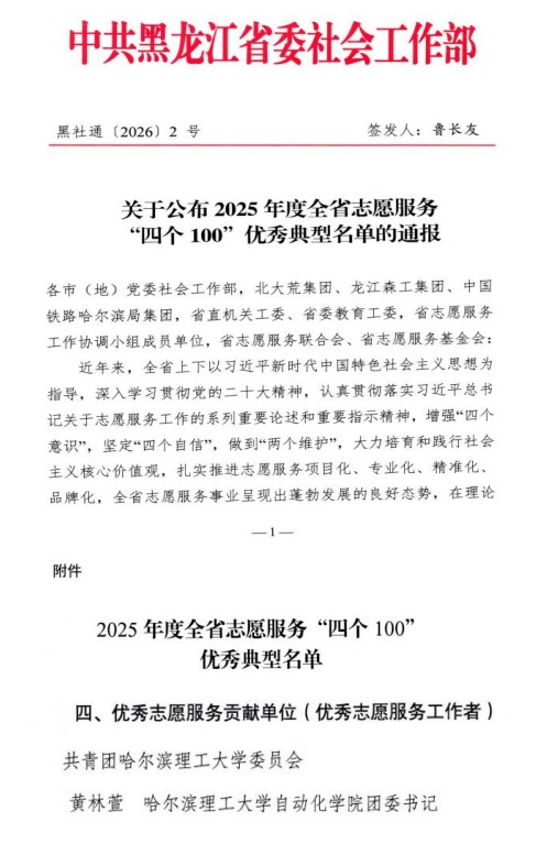 依托第二课堂,学校将志愿服务与劳动教育有机融合,切实提升了青年学子的责任意识与实践能力,我校志愿服务工作屡获表彰。2026年寒假,学校师生代表受邀参加亚冬会表彰大会,学校团委获评省级先进集体,2名教师获评省级先进个人,1名学生获评市级先进个人。在2025年全省志愿服务“四个100”优秀典型评选中,学校团委获评优秀志愿服务贡献单位,1名教师获评优秀志愿服务工作者。这些荣誉不仅是对我校志愿者们的充分肯定,更是对全校志愿服务工作的极大激励,鼓舞大家在新征程上以实际行动续写新时代的雷锋故事。