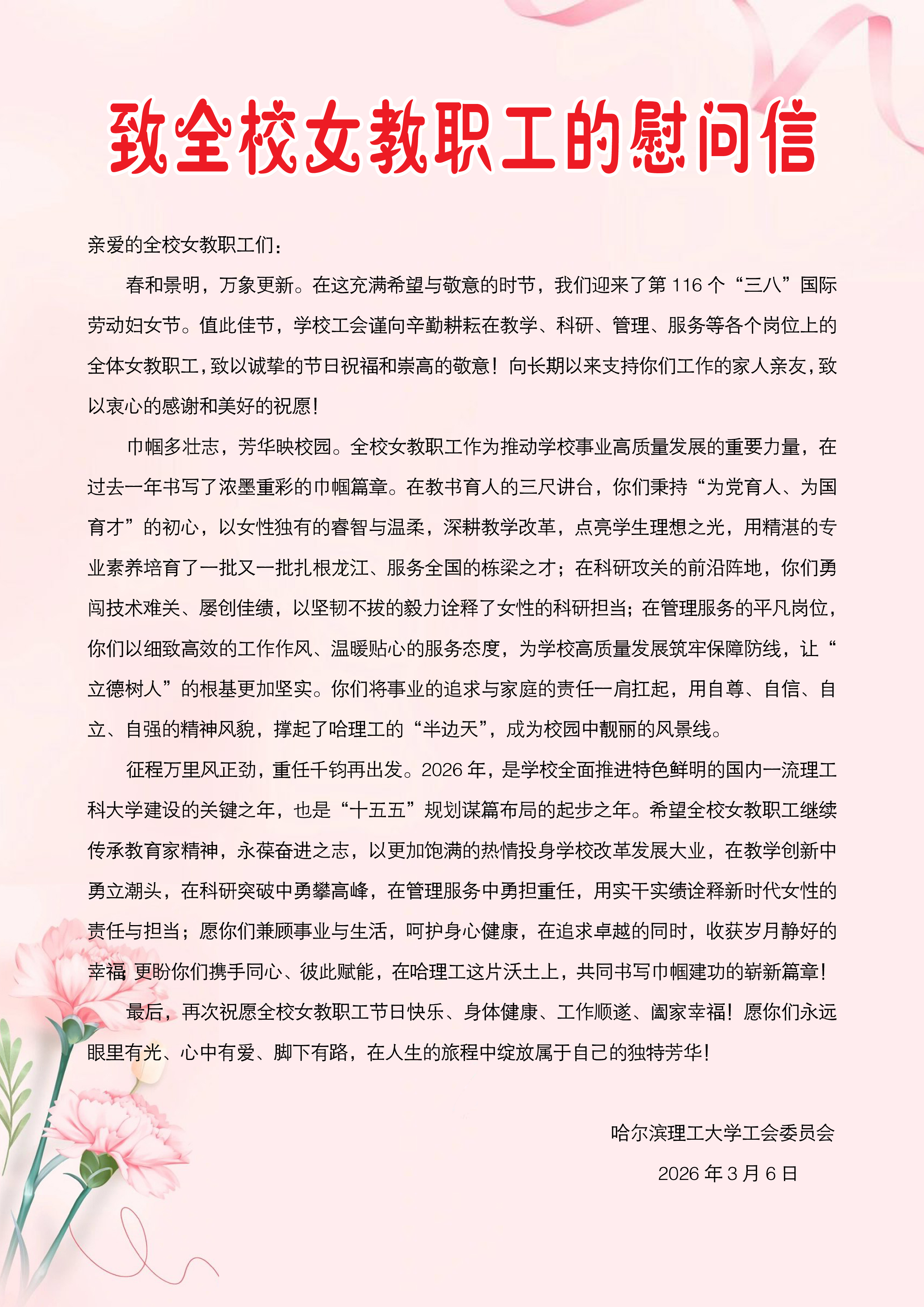 作者:马宇宁责任编辑:翟羽 审核:单鹂娜 王立明 杨胜宝校对:马宇宁来源:校工会 日期时间:2026-03-06 09:04:57点击: