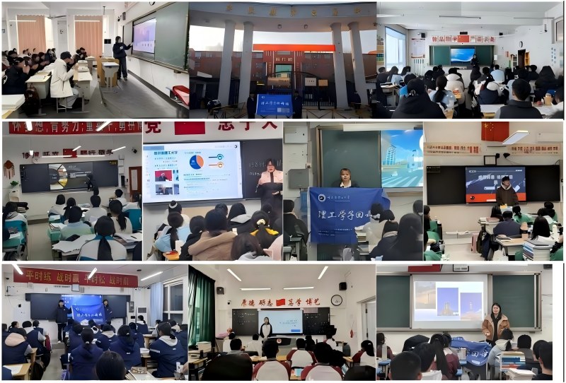 活动中,学子们分组抵达各地高中母校,通过PPT演示、经验分享、互动答疑、实物展示等丰富多样的形式,全方位、多角度向学弟学妹们推介哈尔滨理工大学。宣讲过程中,学子们围绕学校核心办学特色展开详细介绍,重点传递学校“育人为本、特色立身、科教融合、装备报国”的办学理念,深入解读王大珩先生“忠诚祖国、献身科学、淡泊名利、寻优勇进”的大珩精神,让学弟学妹们深刻感悟学校的文化底蕴与精神内核。同时,详细介绍学校“现代工程师的摇篮”这一人才培养定位,以及“厚基础、强实践、有责任、勇创新”的人才培养目标,展现学校鲜明的育人导向。在学科优势方面,重点宣讲学校突出的机电特色、鲜明的国防特色,介绍学校已有23个专业获批国家级一流本科专业建设点、17个专业通过工程教育认证的过硬实力,涵盖电气工程及其自动化、机械设计制造及其自动化等多个优势领域,全方位彰显学科建设成效,同时解读学校服务国家“五大安全”和东北老工业基地振兴的服务面向,全面展现学校的办学实力、发展格局与责任担当,让学弟学妹们全方位了解哈理工的优势与潜力,树立对学校的清晰认知与向往。