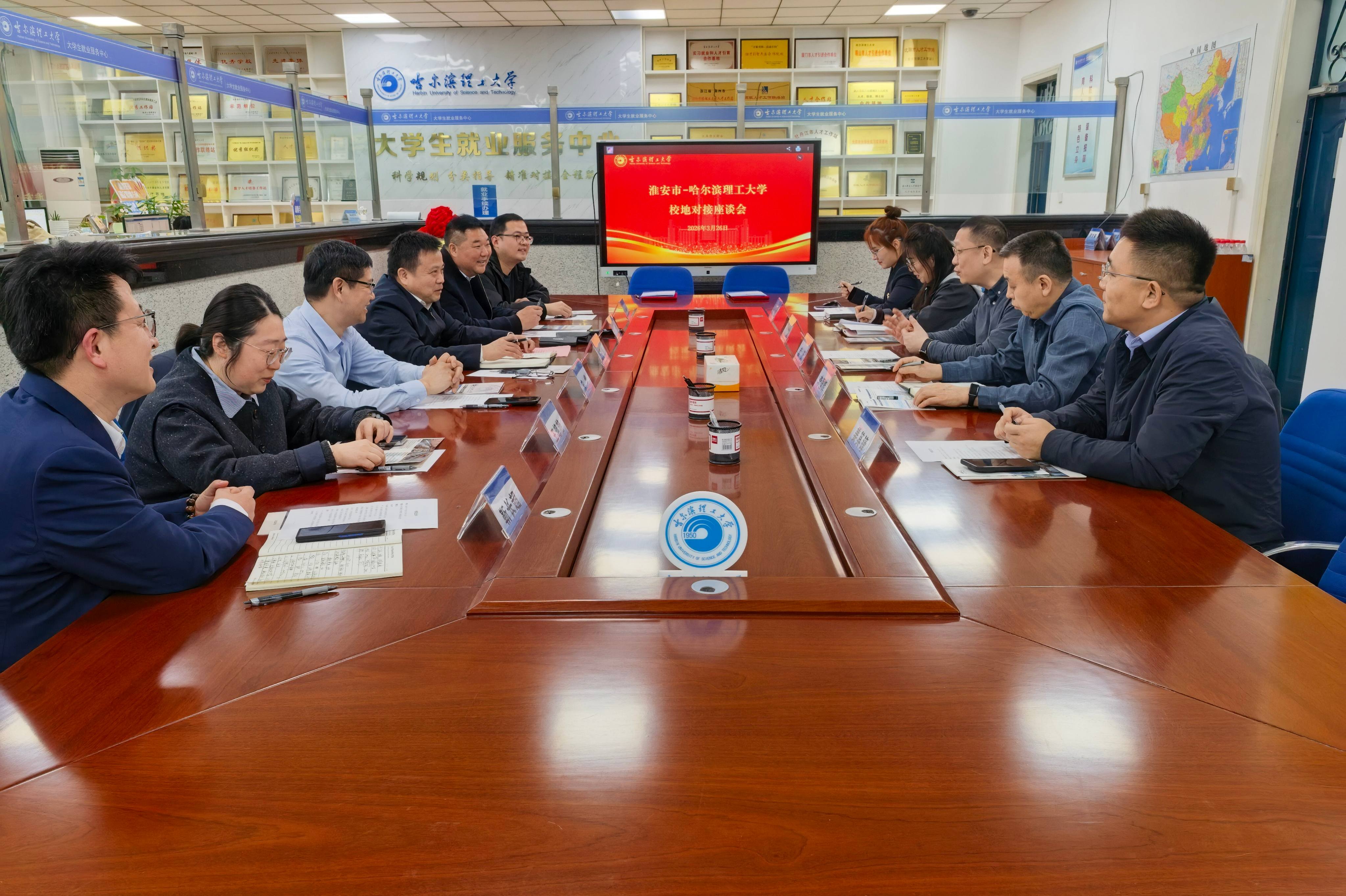 3月26日,淮安市人社局党委书记、局长高进锋一行6人到访我校。双方在西区1号楼205会议室召开政校企合作对接座谈会,围绕精准匹配地方产业人才需求、拓宽毕业生高质量就业渠道等事宜深入交流。我校电气学院党委副书记李国辉、自动化学院党委副书记刘桂娟及就业服务中心相关人员参会。会议由就业服务中心副主任崔征主持。