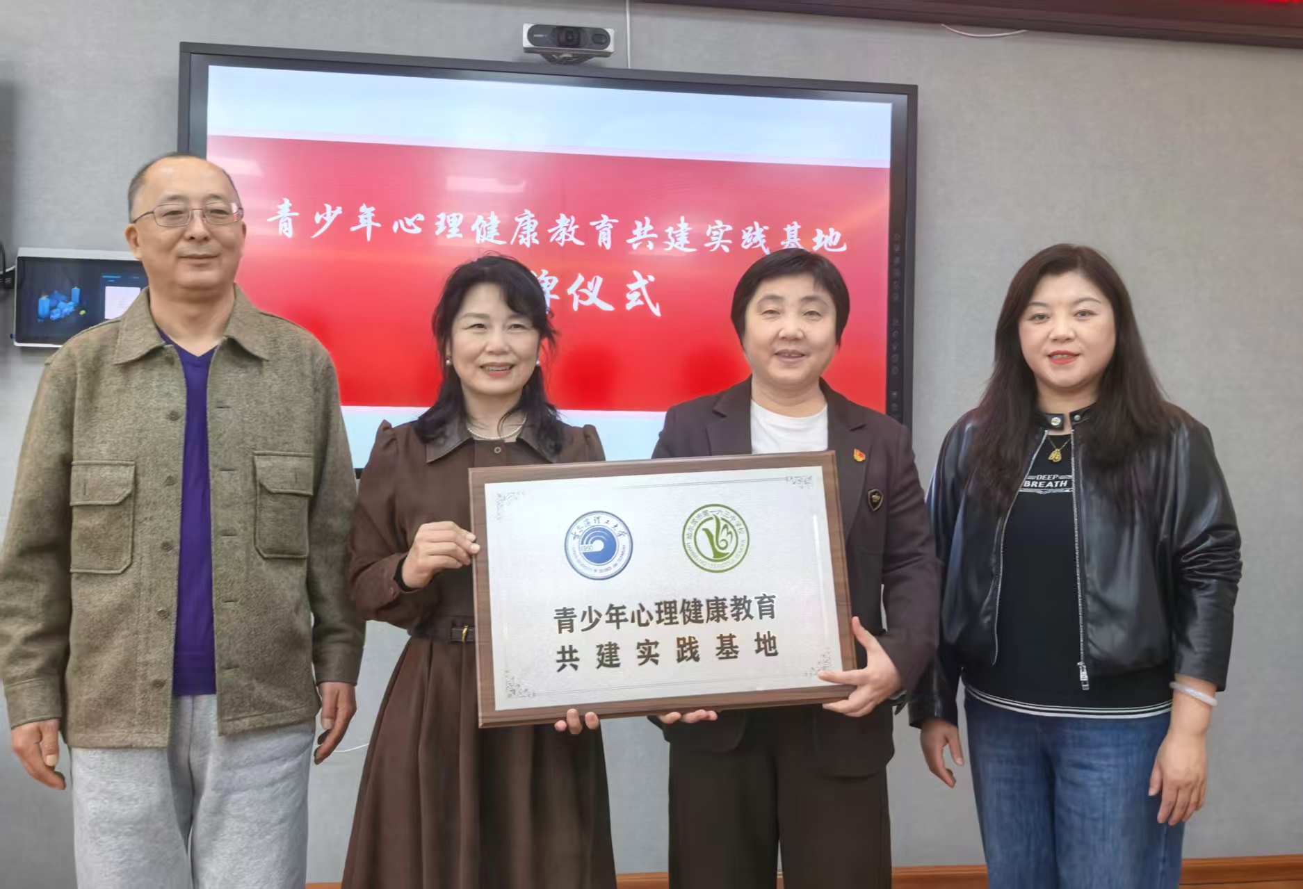 签约仪式后,“青少年心理健康教育共建实践基地”授牌仪式随即举行。田海燕、吕彬江与孔凡晶、赵丽丽共同完成授牌,象征着双方合作落地生根、共育未来。