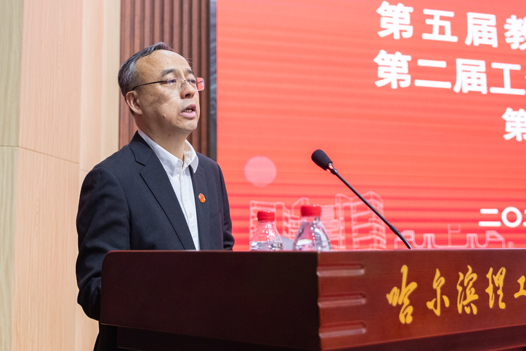 4月17日上午,哈尔滨理工大学第五届教职工代表大会和第二届工会会员代表大会第五次会议在教学主楼五楼报告厅召开,校领导出席大会,109名教代会代表、49名工代会代表和列席人员参加大会,威海校区荣成学院教代会代表和工代会代表线上参会。会议由校党委副书记、工会主席郭加利主持。