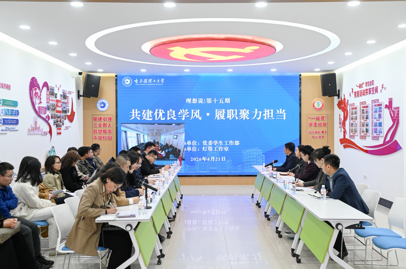 为扎实推进学校2026年“学风建设年”各项部署落地见效,充分发挥班主任在学风建设中的核心作用,4月21日下午,我校第十五期“理想说”学风建设主题交流活动暨班主任座谈会在全国示范“一站式”学生社区召开。校党委副书记张艳君出席会议并讲话,党委学生工作部、校团委、教务处及学院相关负责人、班主任代表参加活动,活动由党委学生工作部部长戴湘竹主持,灯塔工作室承办。