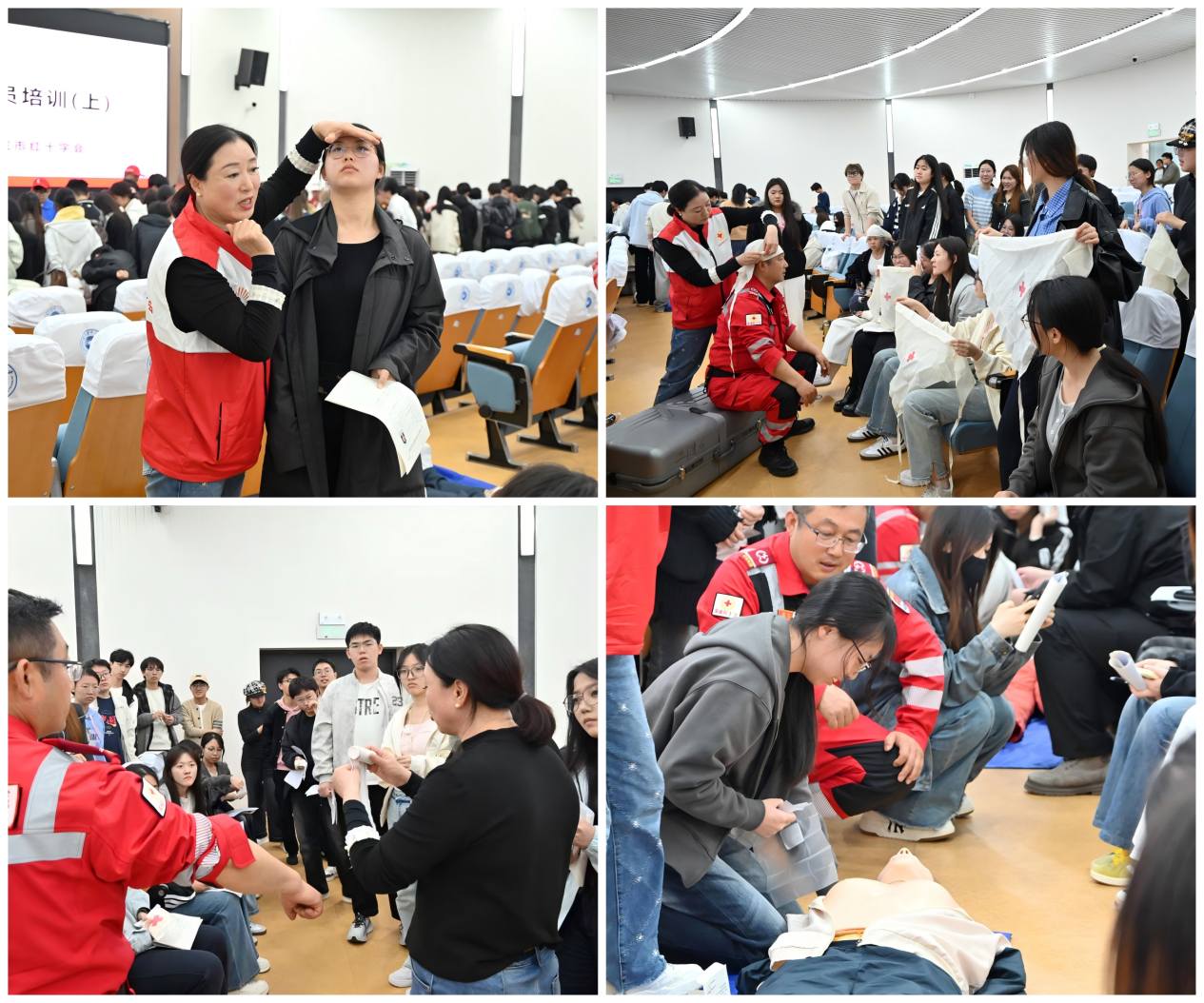 赛事背后,一抹“理工红”温暖全程。荣成学院自3月初启动招募,1500余名学生踊跃报名,经严格面试,最终1100余名志愿者脱颖而出,分批次投入到赛事服务中,其中医疗观察员430人、赛道指引100人、存取包125人、路演拉拉队141人,另有267人提前两天上岗完成赛前物资分装发放。从3月下旬起,一场“理论+实操+演练”的闭环培训全面铺开:红十字会讲师为医疗志愿者拆解CPR、AED、止血包扎与中暑急救;赛道指引组长实地踏勘42公里点位;存取包团队反复模拟“零差错”流程;赛前发物的267名同学更是在两天内完成十万余件物资的精准分装。近一个月的打磨,让每一位志愿者胸有成竹,以专业与热忱为赛事筑起坚实后盾。