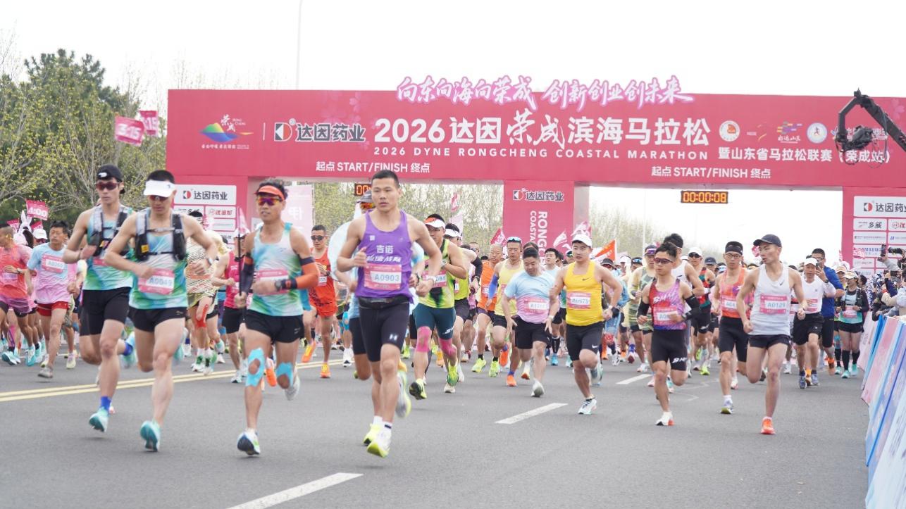 樱海同程,青春作答。4月19日上午,2026达因·荣成滨海马拉松在荣成市体育中心鸣枪开跑。近万名跑友踏浪逐樱,驰骋在低海拔、缓坡度的“最美滨海赛道”上,用脚步丈量山海之美。