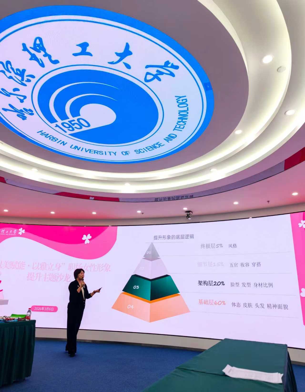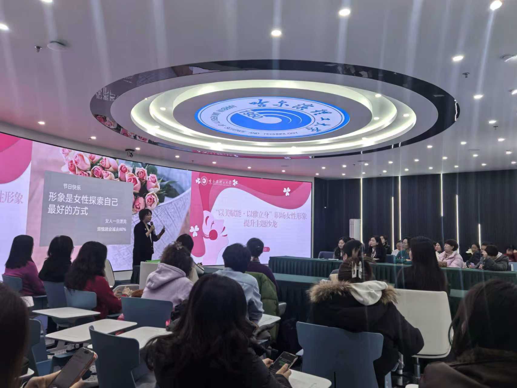 为庆祝第116个“三八”国际劳动妇女节,进一步提升我校女教职工的职业形象与审美素养,3月6日下午,“以美赋能·以雅立身”职场女性形象提升主题沙龙在智慧校园一体化教室成功举办。本次活动特邀从业14年的国家级色彩搭配师、资深时尚专家李星姚担任主讲,各基层工会选派的40余名女教职工代表齐聚一堂,共赴一场美学与成长的专属之约。
