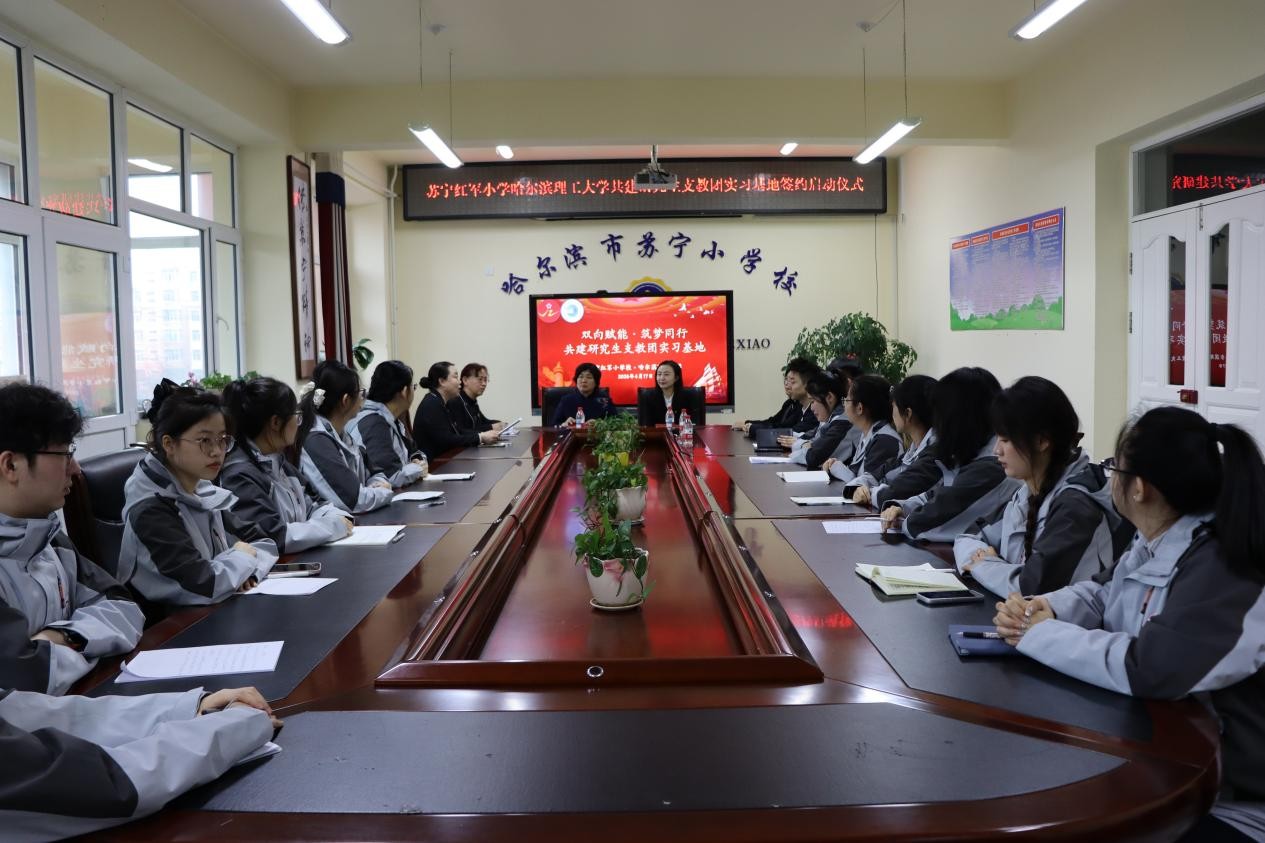 韩彧博向苏宁红军小学对我校研究生支教团培训工作的支持表示感谢,希望参训同学身份转变扎实、多元角色务实、精神传承切实,在实习期间展示哈理工人务实创新的优良作风,做大珩精神的践行者。双方以此次合作为契机,深入实施新时代立德树人工程,在大中小学思政一体化进程中深化交流、共育硕果。