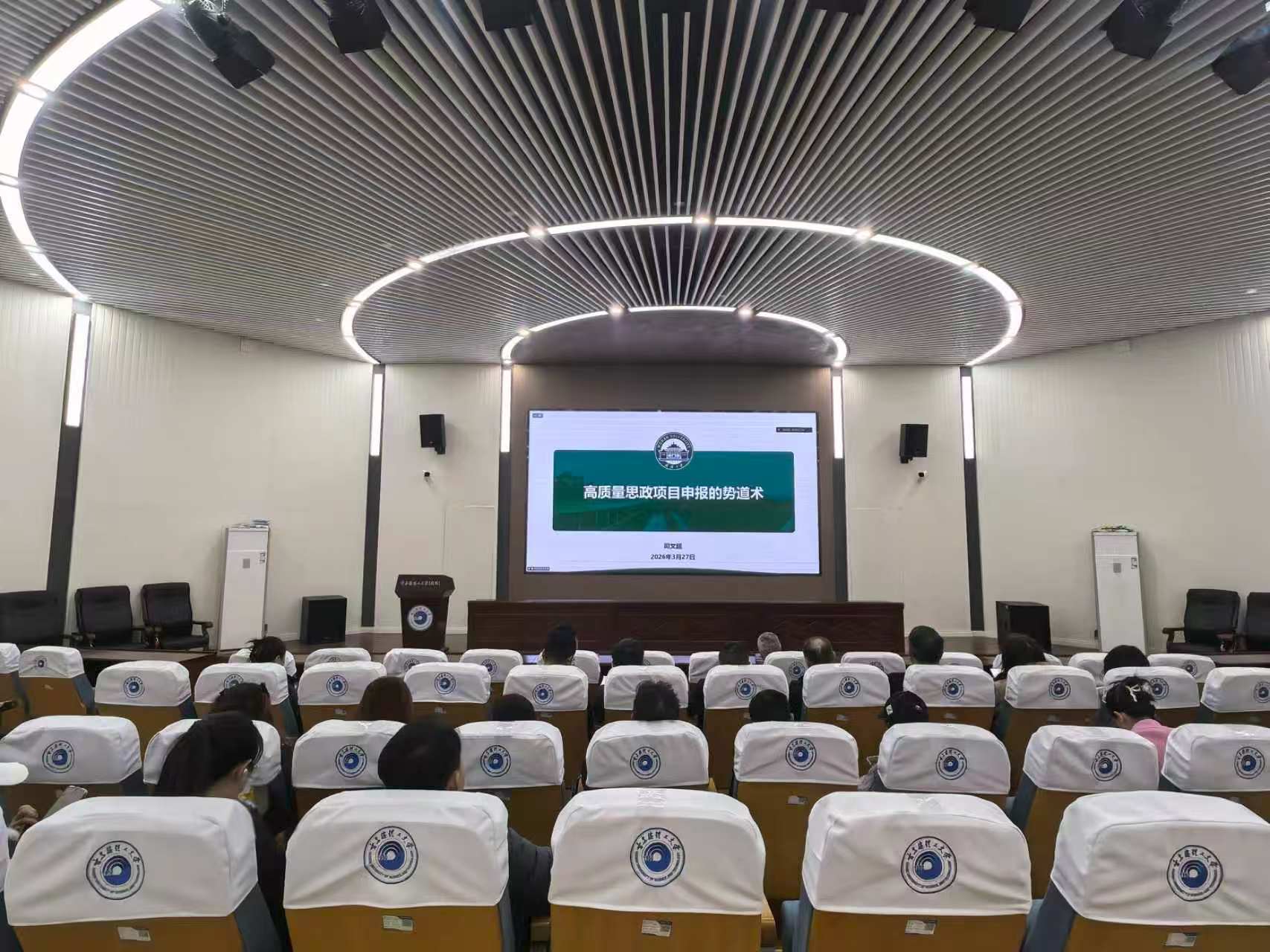 司文超以《高质量思政项目申报的势道术》为题,从四个维度展开系统讲解。在项目申报“之道”的层面,阐释了思政项目申报的重要意义,指出申报研究是提高政治站位、推进思政工作体系“螺旋上升”的关键,也是思政工作者的职责与追求卓越的路径;在项目申报“之维”的层面,明确申报需聚焦基本原理、趋势规律、顶层设计等核心要素;在项目申报“之谋”的层面,讲解了品牌项目示范推广、骨干队伍培育提升、平台基地辐射引领三类申报方向,为申报开局指明了路径;在项目申报“之术”的层面,给出读经典、担课题、练笔力等进阶方法,强调思政工作者要深耕领域、立己立人,保持独立思考。此次培训内容详实、指导性强,让学校思政工作者明晰了思政项目申报的思路与方法,为我校后续思政项目培育申报和思政工作提质增效奠定了坚实基础。